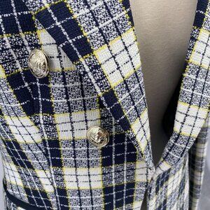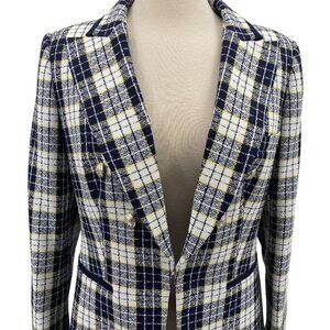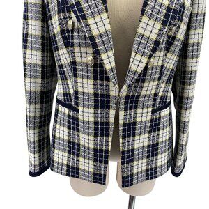Tommy Hilfiger Preppy plaid fitted blazer size 10 blue white office Nerd