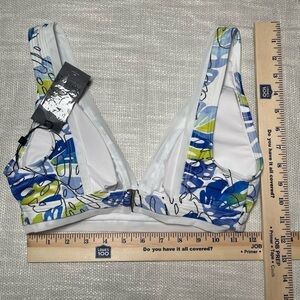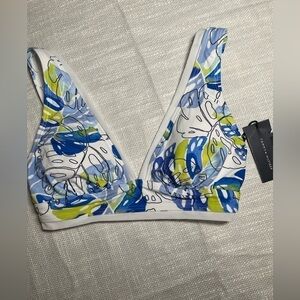 $88 Tommy Hilfiger Printed Bikini Top Womens SP Swimsuit White Hook Back Removable Pads