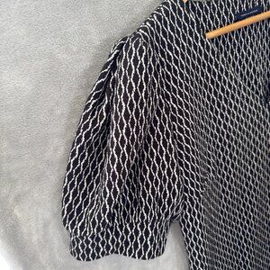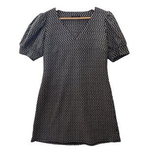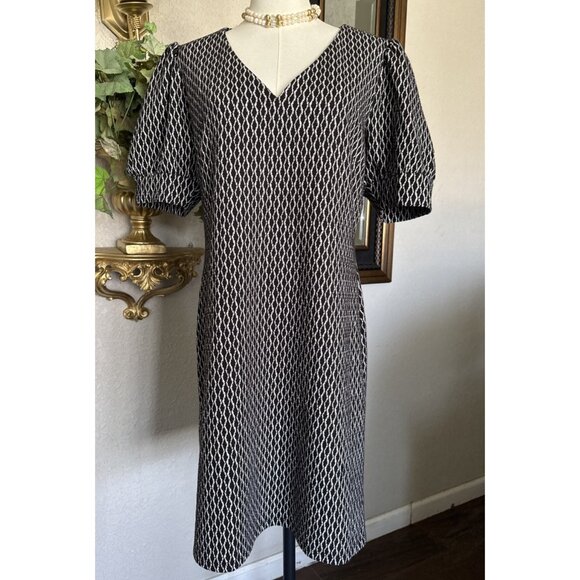 Tommy Hilfiger Puff Short Sleeve Swing Dress Pull On Black White Vneck Size 14
