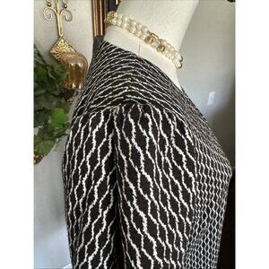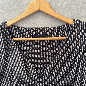 Elevate your wardrobe with the Tommy Hilfiger Swing Dress, a versatile piece that encapsulates casual elegance. This size 14 midi dress features a striking black and white geometric pattern that's sure to turn heads. The flattering V-neck and short puff sleeves add a touch of sophistication, making it perfect for a range of occasions. Crafted from a comfortable blend of polyester, cotton, and elastane, this shift dress is designed to offer a stretch fit that complements your silhouette. It's easy to wear with a simple pull-on style and is suitable for various seasons—be it summer, spring, or winter. Carefully made in Vietnam, this dress requires dry clean only to maintain its chic appearance.