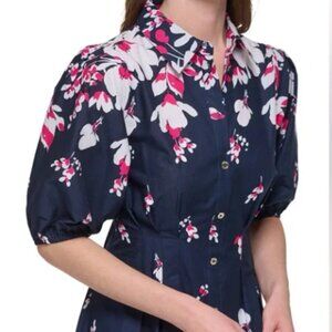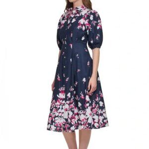 Tommy Hilfiger Women's Cotton Puff-Sleeve Floral Midi Dress Size 12