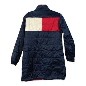 Tommy Hilfiger Puffer Button Down Jacket Women's Size L Blue Red White Vintage