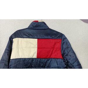 Tommy Hilfiger Puffer Button Down Jacket Women's Size L Blue Red White Vintage