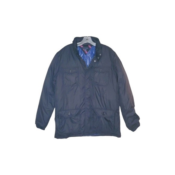 Tommy Hilfiger Puffer Coat Men Large Blue Vintage Style 6 Pocket