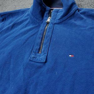 Tommy Hilfiger Pullover Sweater Blue Zip Up Cotton Mens Size M Medium