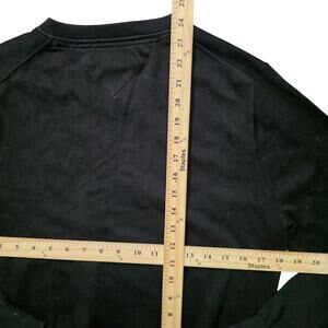 This Tommy Hilfiger pullover sweatshirt in size S features a clean solid black design with a V-neck cut and long sleeves, made from a comfortable midweight cotton blend that works great for layering or casual wear.
