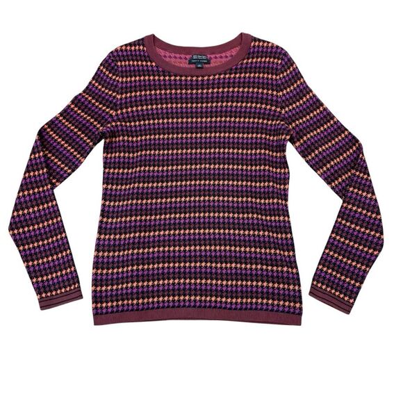 Tommy Hilfiger Purple Orange Pima Cotton Houndstooth Sweater Size S