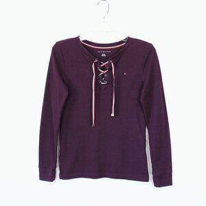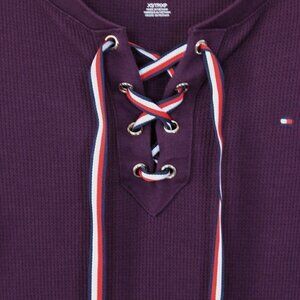 Tommy Hilfiger Purple Waffle Lace Up Henley Extra Small