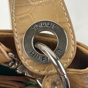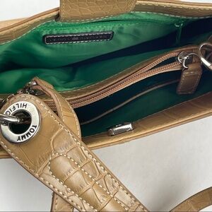 Tommy Hilfiger Purse Womens Tan Leather Green Interior Strap Silver Buckle