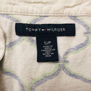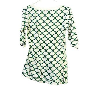 Tommy Hilfiger Quatrefoil Split Neck Half Sleeve Top White Green Small