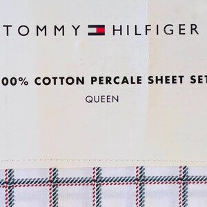 Tommy Hilfiger Queen Size 100% Crisp Cotton Percale Red Blue Plaid Sheet Set