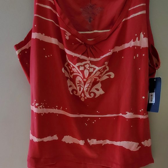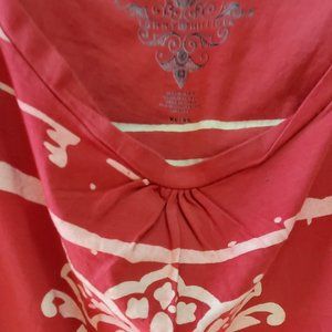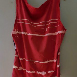 Rust with cream white graphic TEE shirt Underarm across the front 22 Length 17 Strap 2"