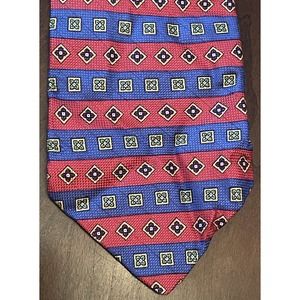 Tommy Hilfiger Red Blue 100% Imported Silk Printed In Italy Made In Usa
