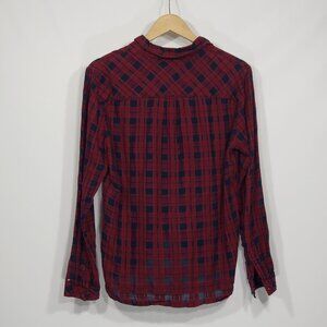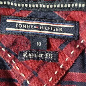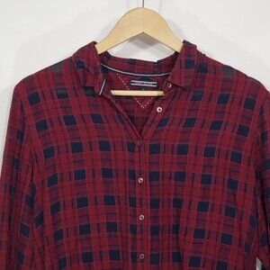Tommy Hilfiger Red Blue Plaid Semi Sheer Buttondown Shirt Women's 10