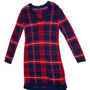 Tommy Hilfiger Red Blue Plaid Wool Blend Sweater Dress Women's Size Small S