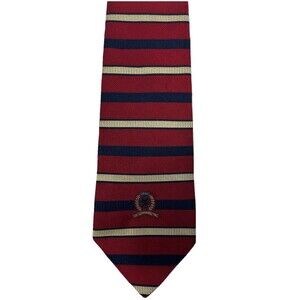 Tommy Hilfiger Red Blue Tan Repp Logo Neck Tie 57.25" x 3.75"