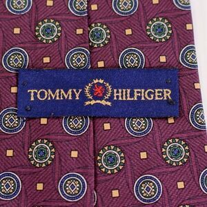 Tommy Hilfiger Red Blue Two Tone Geometric Print Wide Italian Silk Tie