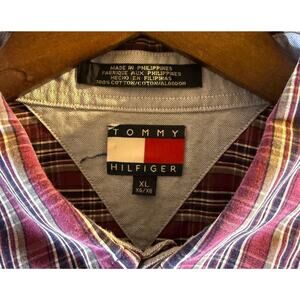 Tommy Hilfiger Red Checkered Button Front Dress Shirt Size XL EUC