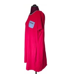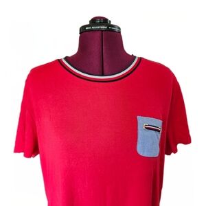 Tommy Hilfiger Red Cotton Mini T-Shirt Dress with Blue Chest Pocket