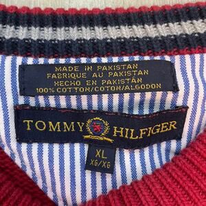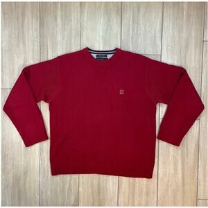 Tommy Hilfiger Red Cotton V-Neck Sweater Men’s XL Crest Logo Preppy Classic
