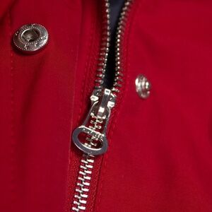 Preowned, Tommy Hilfiger Red Hooded Jacket with some wear and small branded metal tag is loose and could either be be removed or mended (see photos). Otherwise in good condition. See ALL photos for quality, measurements and condition.