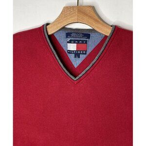 Tommy Hilfiger Red Knit Sweater Vest V-Neck Mens Large Cotton Golf Preppy