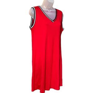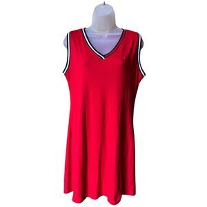 Tommy Hilfiger Red Knit Tank Dress Sz M Sporty V Neck Athleisure Classic
