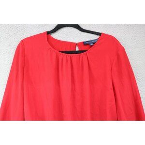 This is a pretty red Tommy Hilfiger Women's Blouse that has Long Puff Sleeves and has elastic around the waist. It is a size Large and has a button in the back for closure. It is 100% Polyester. This would be great for the office. Laying flat, it measures: Armpit to armpit-22" and the length is 24". In great condition.