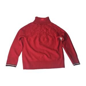 Tommy Hilfiger Red Turtleneck Sweater Womens Medium Cable Knit Holiday Preppy