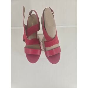 Tommy Hilfiger Red Wedge Sandals Size 8M Cork Platform Slingback