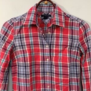 Tommy Hilfiger | Red White Blue Plaid Button Down Long Sleeve Collared Shirt XS