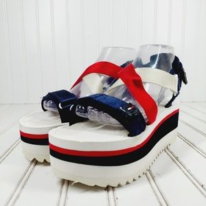Tommy Hilfiger Red, White, and Blue Platform Sandals