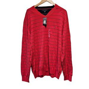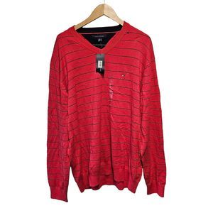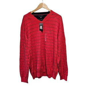 New Mens Tommy Hilfiger Red With Blue Stripes V Neck Pullover Sweater XXL