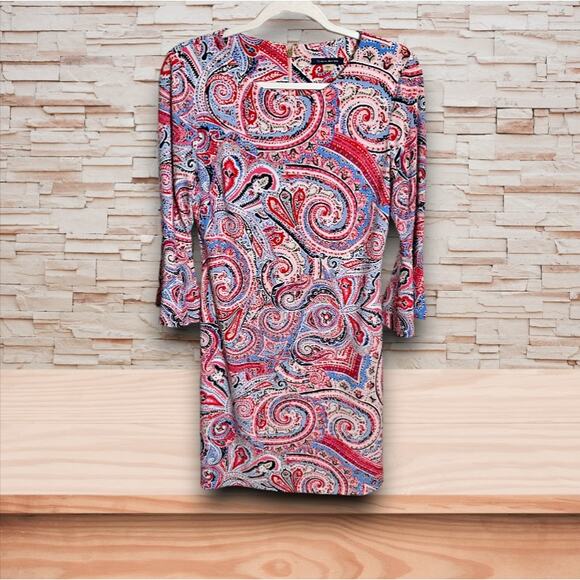 Tommy Hilfiger Red and Blue Paisley Midi Dress