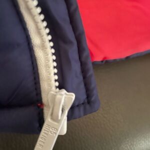 Vibrant red and navy Tommy Hilfiger Puffer vest for babies size 6/9 months Features iconic logo detail. In excellent condition!