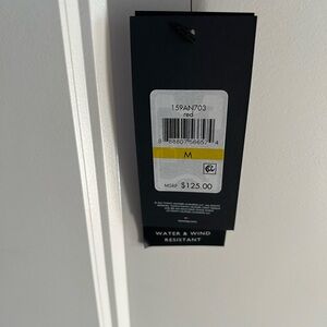 Stylish Tommy Hilfiger windbreaker in red navy. Features a bold logo design. New with tags water and wind resistant. New with tags size M