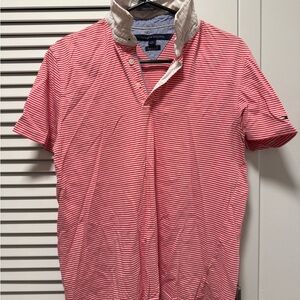 Classic Tommy Hilfiger polo with red and white stripes. Custom fit for a tailored look. Ideal for casual outings.