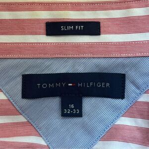 Tommy Hilfiger Red and White Striped Slim Fit Button Down Shirt size 16