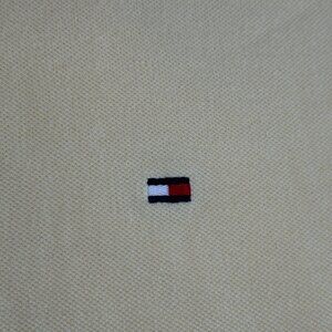 Logo: Embroidered red, white, and navy Tommy Hilfiger flag on chest