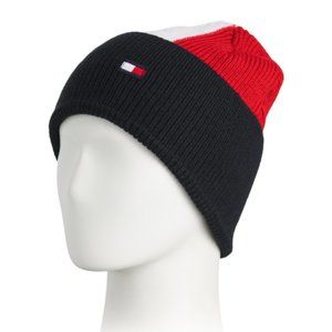 Tommy Hilfiger Rib Cuff Beanie NWT Colorblock Red White Blue 100% Authentic