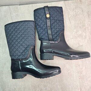 Tommy Hilfiger Rubber Rain Boot 9 Blue Quilted Preppy Equestrian Outdoor Winter