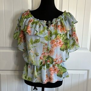 Tommy Hilfiger Ruffle Short Sleeve Floral Blouse. Large