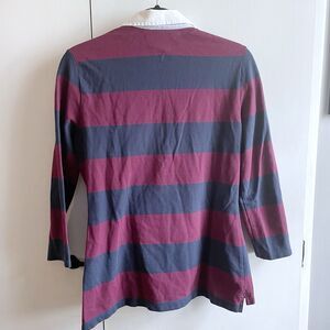 Tommy Hilfiger Rugby Polo Shirt Women’s M Ruffles Red Blue Striped 3/4 Sleeve
