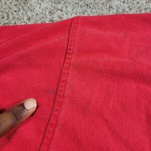 Tommy Hilfiger Rugby Shirt Mens Large Red Long Sleeve Preppy Retro Crest. Has some fading and a couple marks. Shows some discolor around wrist