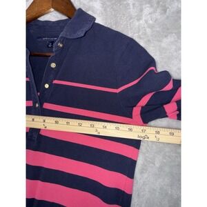 Tommy Hilfiger Rugby Stripe Polo Shirt Dress Women's Small Pink & Navy Stripe