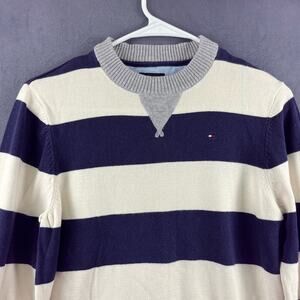 Tommy Hilfiger Rugby Sweater Kids Large (16-18) Blue White Preppy Academia Knit