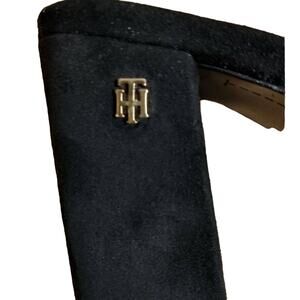 Tommy Hilfiger Sayna dressy open toe mules black with gold trim size 8
