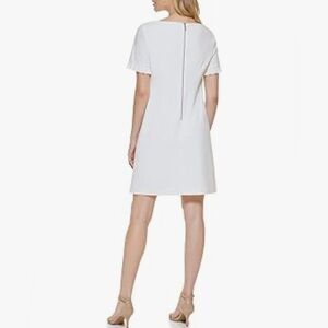 Tommy Hilfiger dress, ivory sheath dress, ruffle sleeve dress, scuba crepe dress, petite 6P dress, bridal shower dress, rehearsal dinner outfit, work to weekend dress, classy ivory dress, spring occasion dress, graduation dress, timeless sheath style, elegant petite dress, new with tags dress, women’s white dress