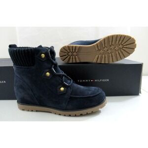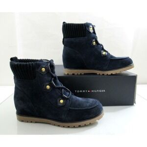 Tommy Hilfiger Serafin Lace Up Wedge Boots Booties Medium Blue Suede