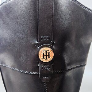 Women's Black Tommy Hilfiger Shano Wide Calf Knee High Boots Faux Leather upper 7.5